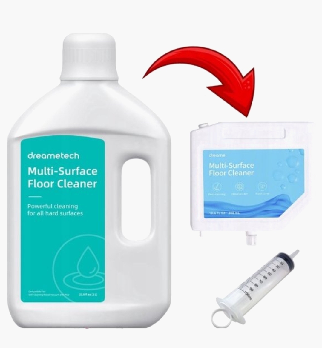 Vloerreiniger: Dosering en gebruik volgens de instructies van Dreame robotstations; mengt automatisch met water voor de perfecte reinigingsoplossing.